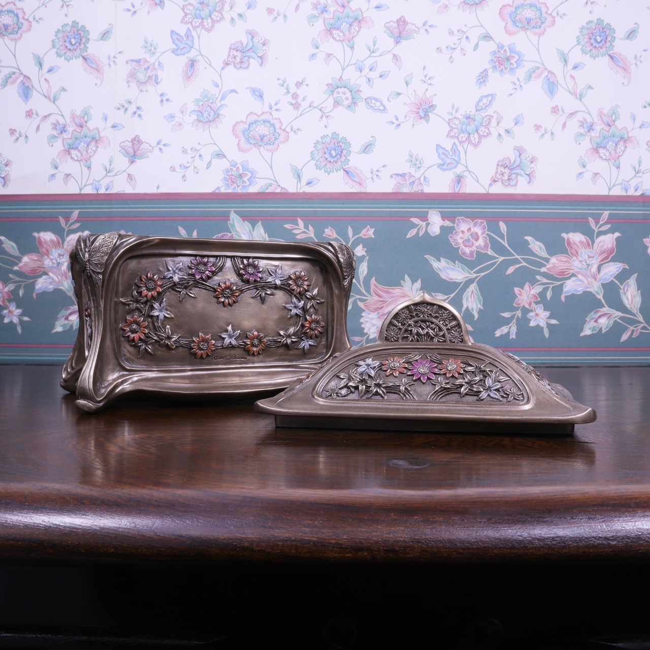 ブロンズ調 ジュエリーボックス フラワー